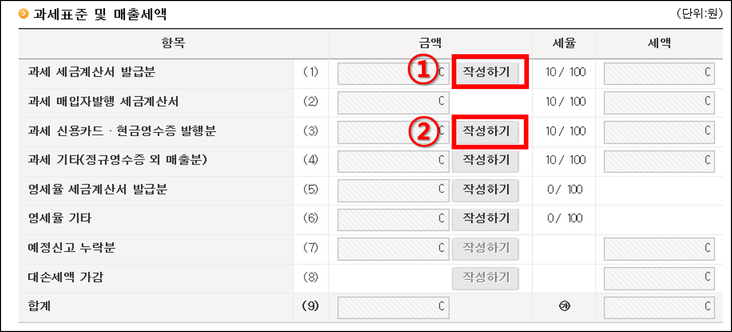 6)과세표준 및 매출세액, 과세표준 명세서 확인