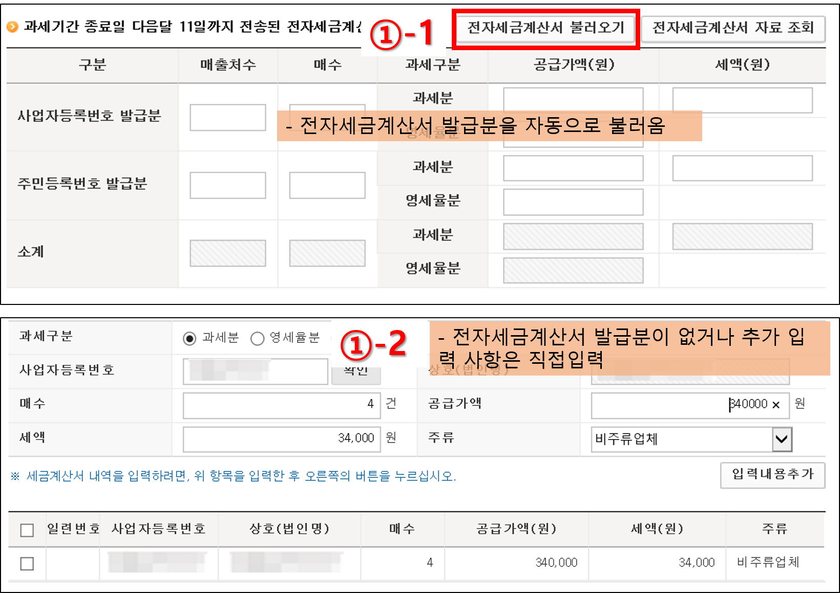-2. 전자세금 계산서 발급분이 없거나 추가 입력사항은 직접 입력해줍니다.