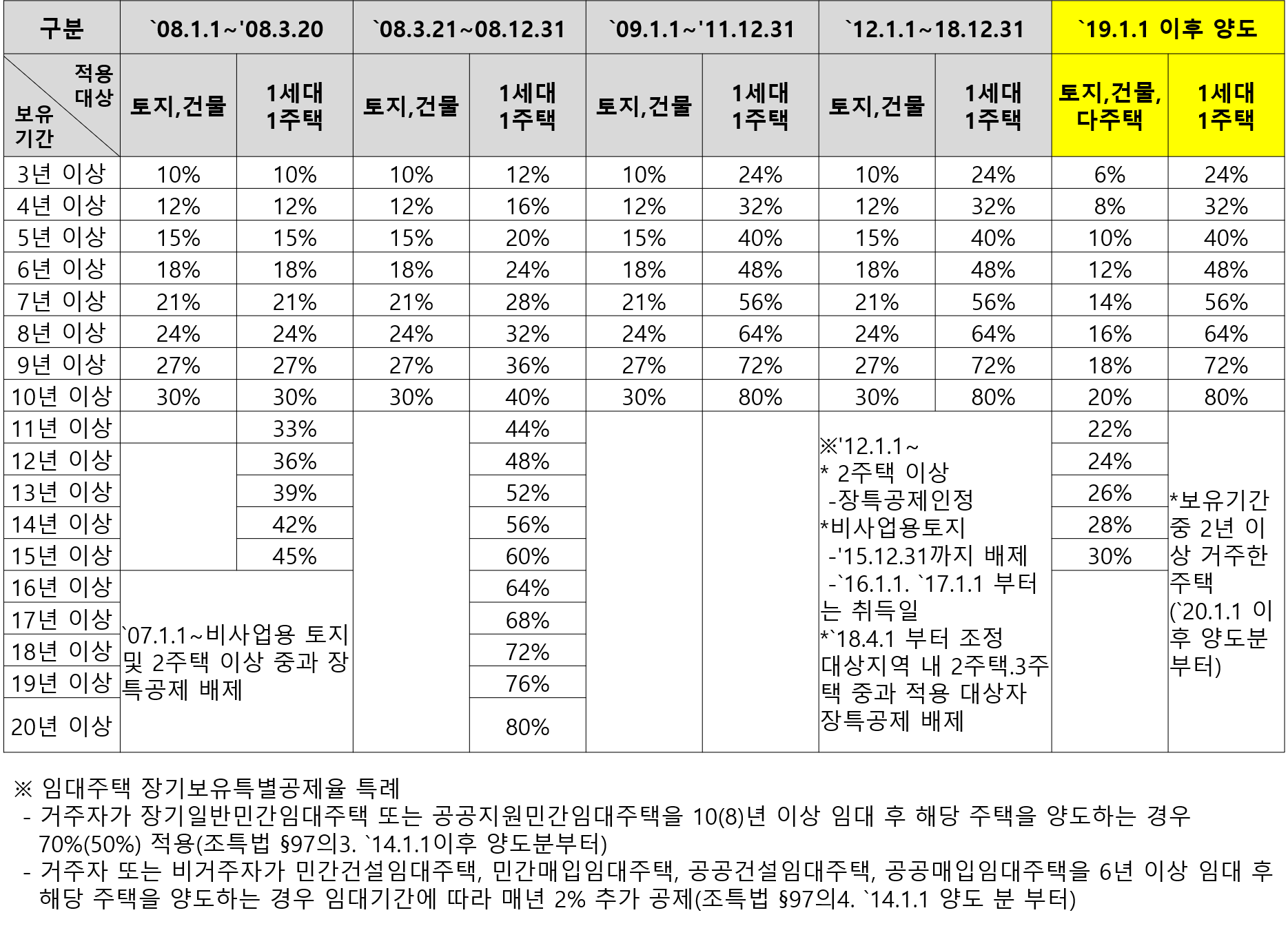 ★ 일반 장기보유 특별공제율 ★
