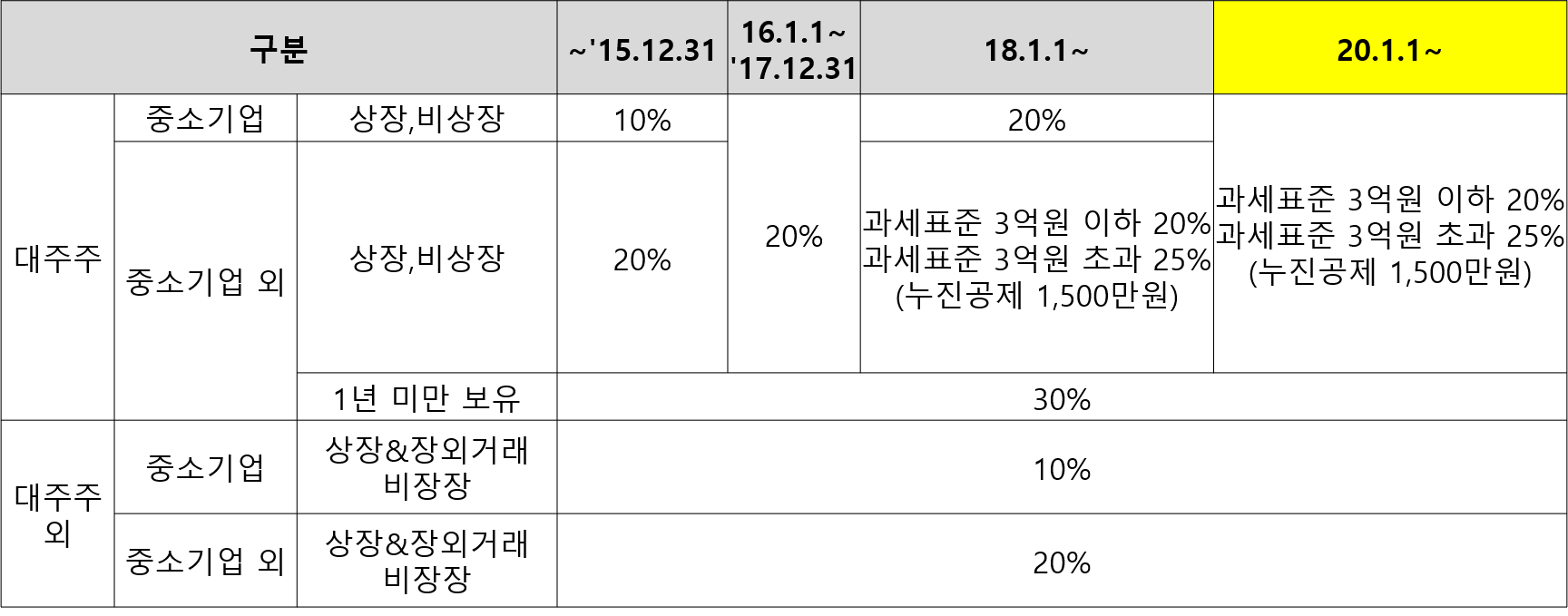 주식 같은 경우 대주주에 부과되는 양도소득세율이 더 높았는데, " '20.7.22 일 발표한 금융세제 선진화 방안"에 따르면 대주주 구분 없이 양도소득세가 동일하게 부과되도록 세법이 바뀌기 때문에 이 부분도 인지하고 투자를 해야 양도소득세 과세에 대해 당황하지 않을 수 있을 것입니다.