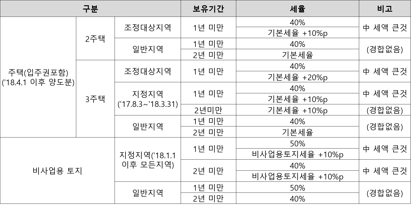 부동산 같은 경우 보유 기간이 짧을 경우 양도소득세 세율이 굉장히 높습니다. 그래서 부동산은 최소 2년 이상은 보유하는 것이 절세하는 방법으로 생각됩니다.