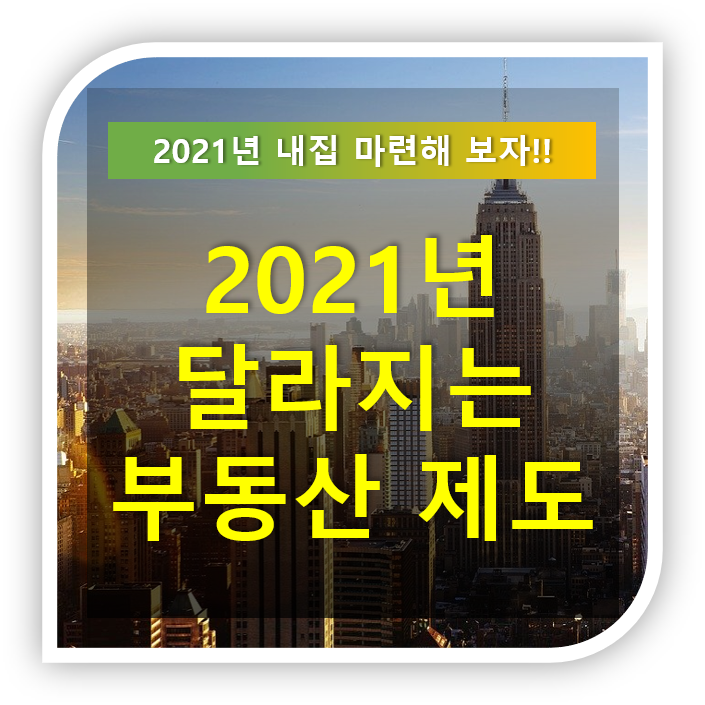2021년이 얼마 남지 않았습니다. 부동산 정책이 많이 바뀌면서 헷갈리는 부분이 많아서 2021년에 적용되는 부동산 제도에 대해서 알아보았습니다.