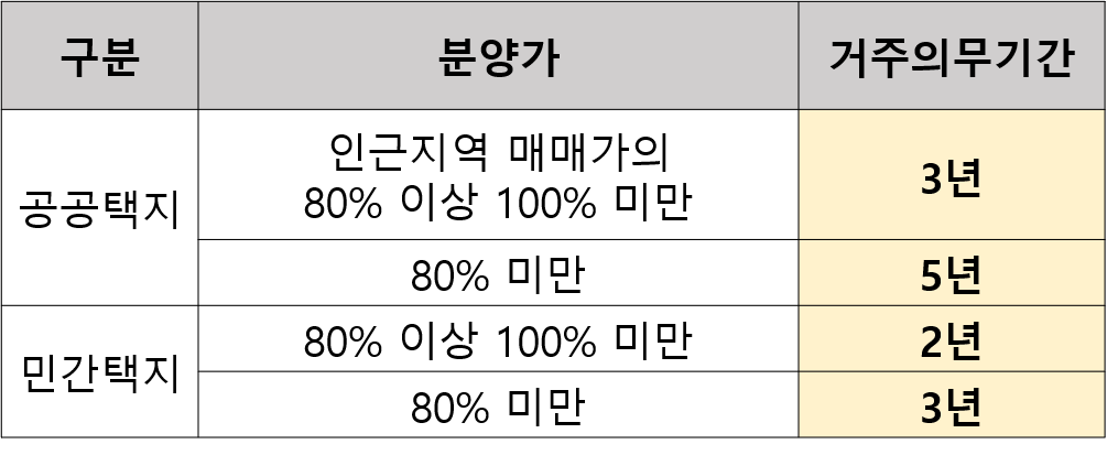 공공택지에서는 분양가에 따라 최초 입주 가능일로부터 3~5년을 직접 입주해서 살아야 합니다.