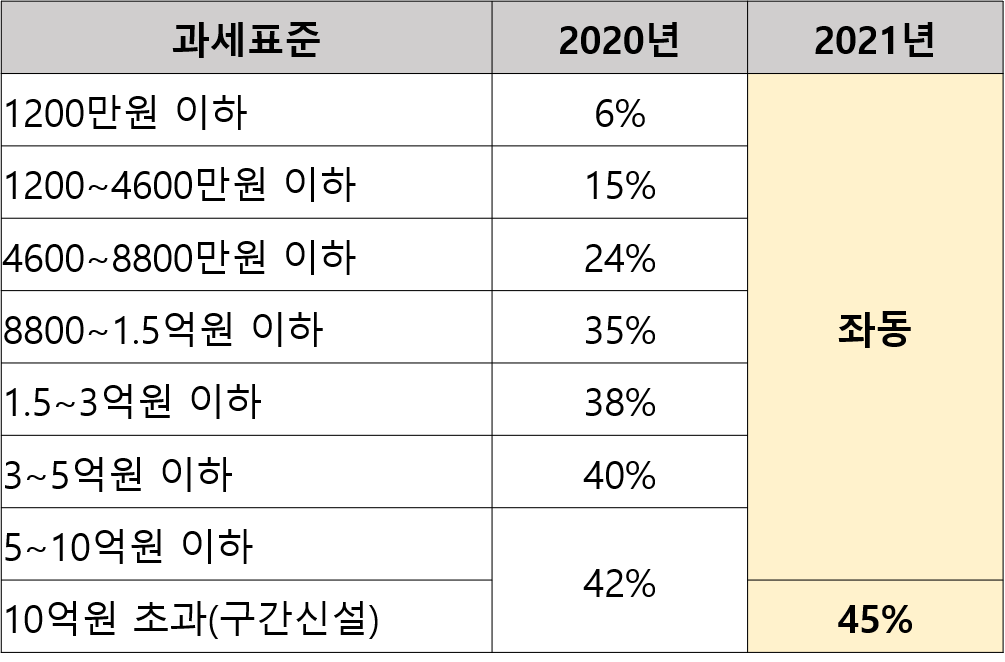 현재 과세표준 5억원 초과 시 최고 42%지만, 내년엔 10억원을 초과하면 최고세율이 45%까지 높아집니다.