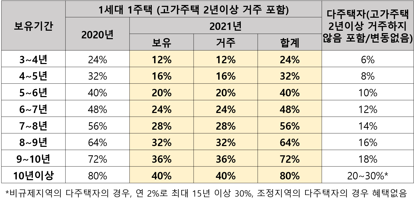 ■1가구 1주택자의 장기보유 특별공제도 달라집니다.