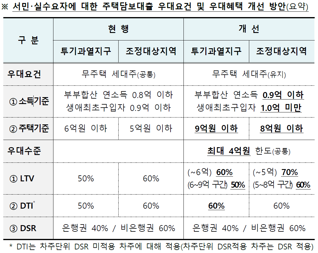 -. 부부합산 소득기준 (0.8 →0.9억원, 생애최초 0.9→1억원)