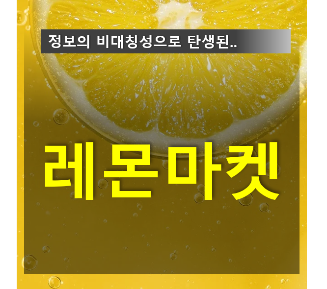 레몬마켓은 제품을 판매하는 사람과 제품을 구입하는 소비자가 같은 정보를 공유하지 못해 결국 품질에 문제가 있는 저급품이 유통되는 상황을 말하는데요,