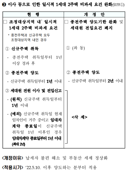 3.이사 등으로 인한 일시적 1세대 2주택 비과세 요건을 완화