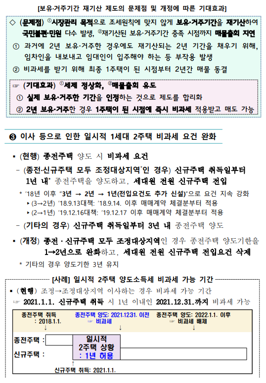3.이사 등으로 인한 일시적 1세대 2주택 비과세 요건을 완화