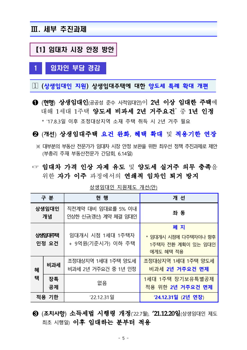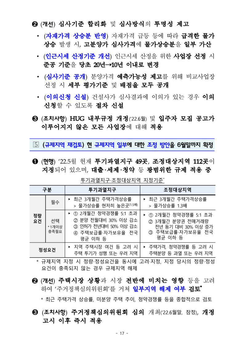 5.(규제지역 재검토) 현 규제지역 일부에 대한 조정 방안을 6월 말까지 확정
