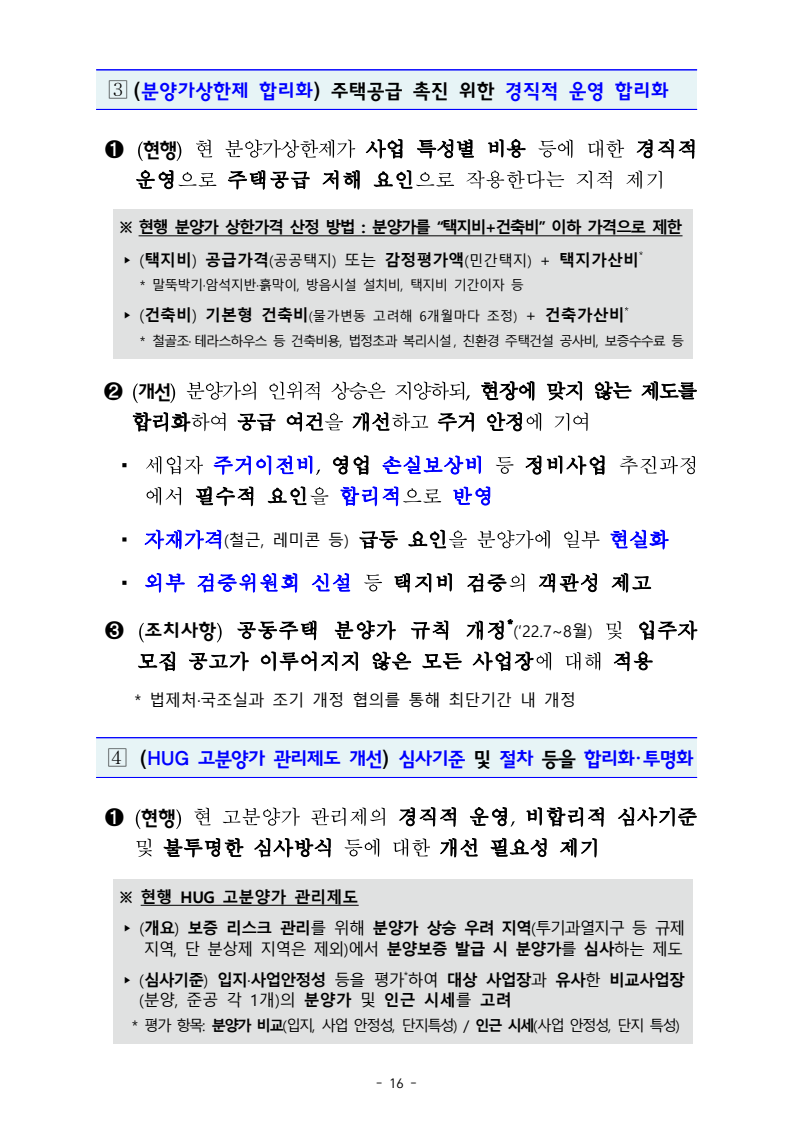 4.(HUG) 고분양가 관리제도 개선) 심사기준 및 절차 등을 합리화, 투명화