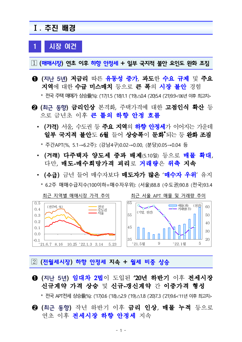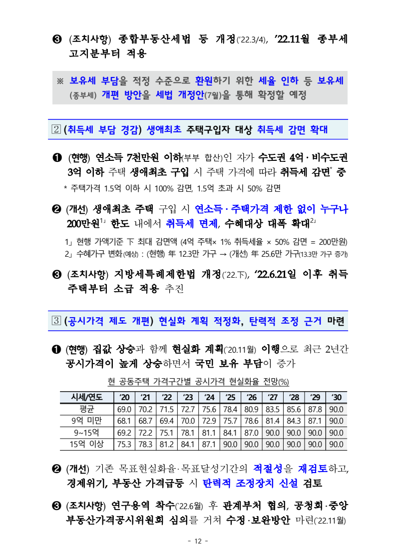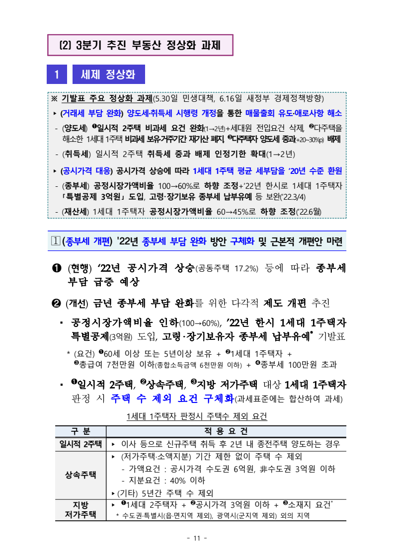 1.(종부세 개편) `22년 종부세 부담 완화 방안 구체화 및 근본적 개편안 마련