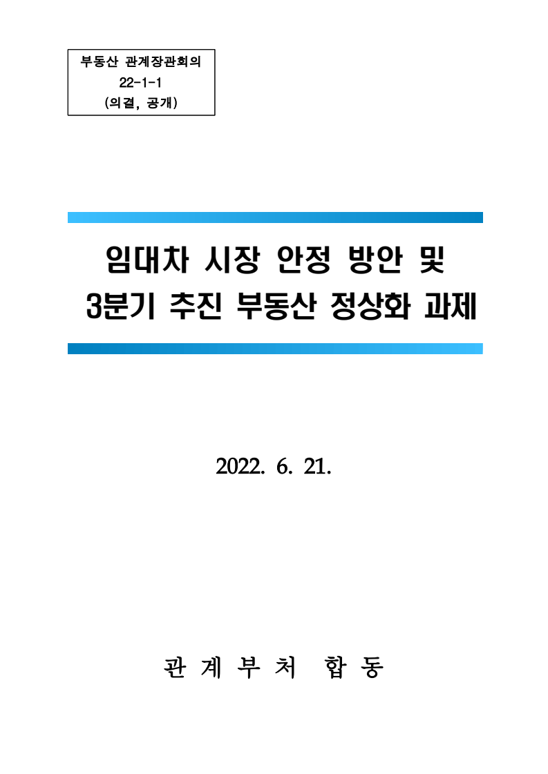 22.6.21 임대차 시장 안정 방안 및 3분기 추진 부동산 정상화 과제에 대한 보도 자료가 나왔습니다.