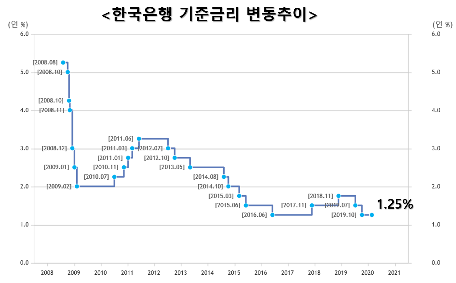 오늘은 한국은행에서 '기준금리 1.25% 동결' 발표를 한 날입니다.