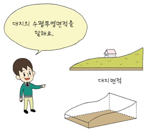 1. 대지면적: 대지의 수평투영면적 입니다.