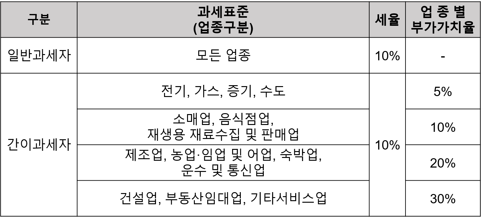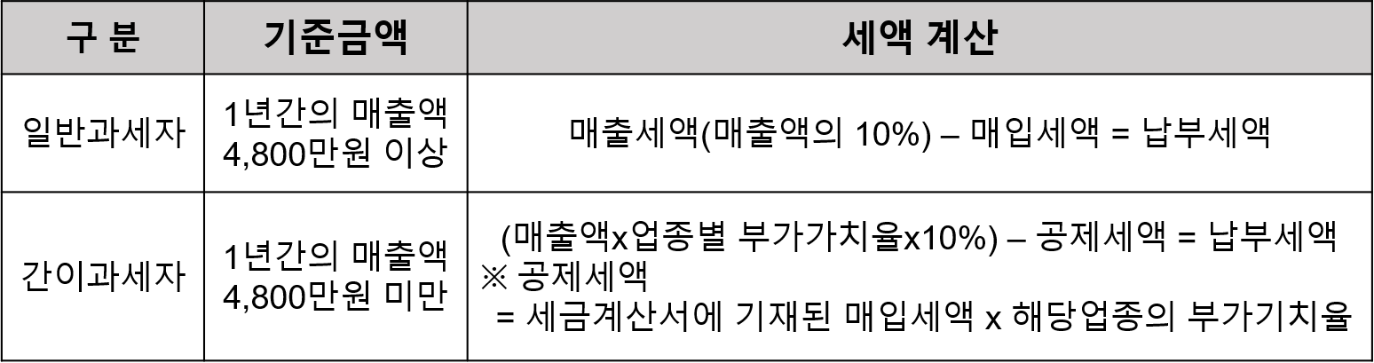- 부가가치세 과세대상 사업자는 상품을 판매하거나 서비스를 제공할 때 거래금액에 일정 금액의 부가가치세를 징수하여 납부합니다.