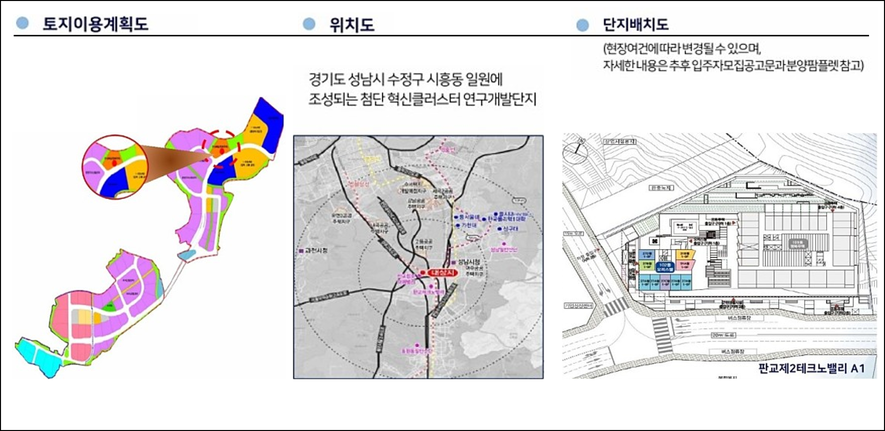 - 서울 강남 및 판교신도시로의 접근성이 우수하고 경부고속도로(판교IC), 서울외곽순환도로(성남IC), 제2경인연결고속도로의 진입이 수월한 광역교통망을 갖추고있음