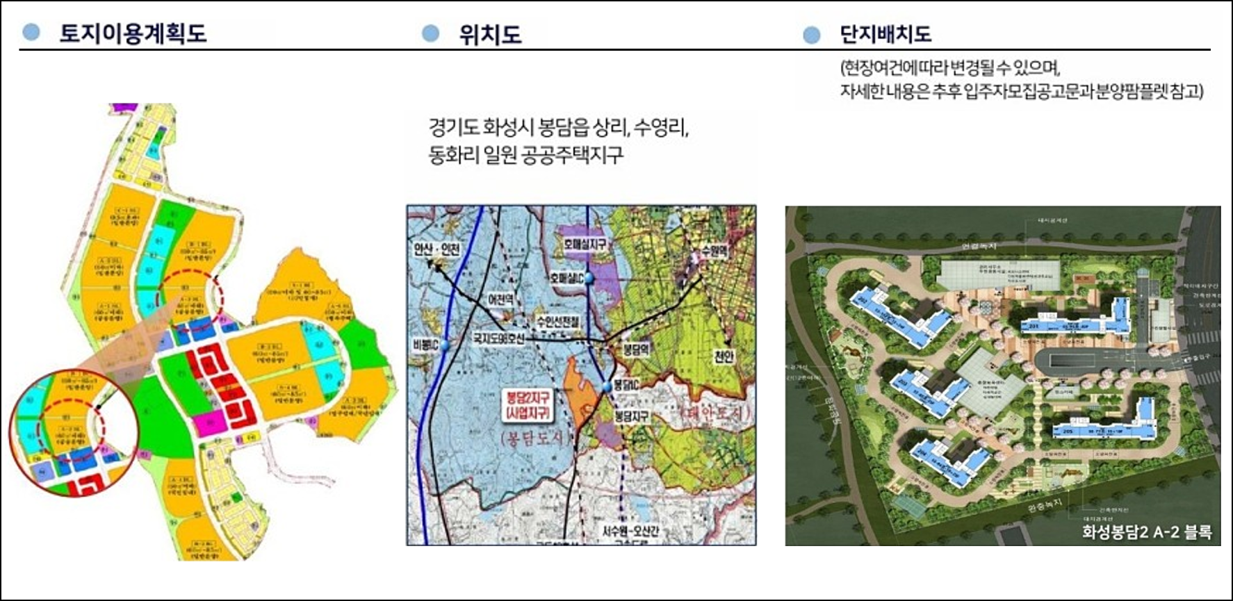 - 지구 내 중심상가 및 봉담읍 시내 기존 상권 이용여권이 양호한 편이며, 지구 주출입부 국도 43호선, 봉담IC를 통한 광역적 교통환경 우수