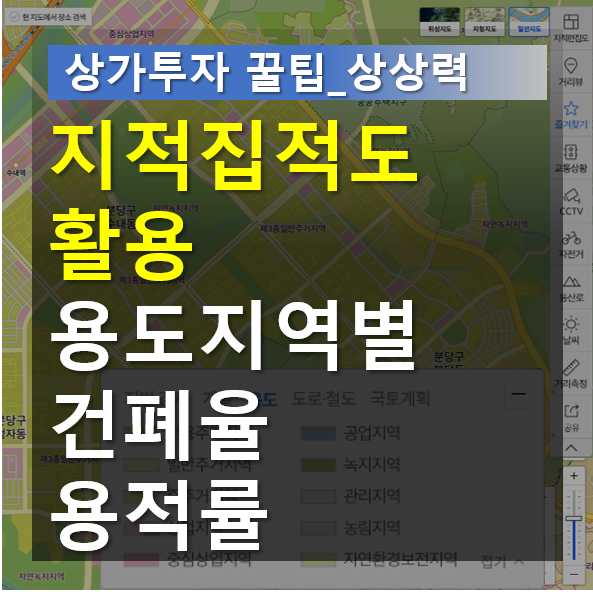 직접 답사를 통해 상가의 크기와 배후 세대를 보면 좋겠지만 걸어 다니면서 볼 수 있는 것은 한계가 있기 때문에 지도와 용도지역별 건폐율 용적률을 통해 더 풍성하게 상권과 입지를 분석할 수 있게 되는 것입니다.
