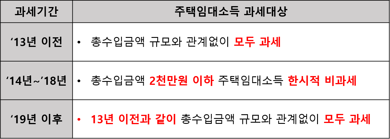 전년 주택임대 수익금액 2천만 원 이하자도 올해 소득신고대상이 됩니다.