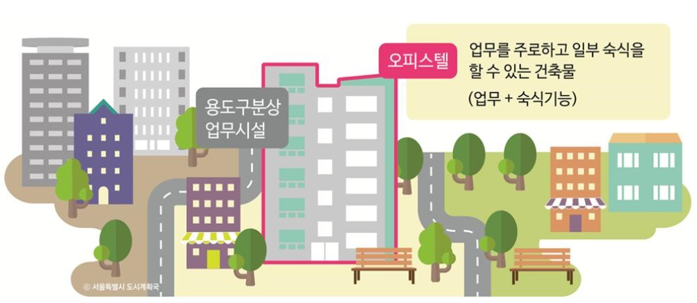 오피스(office)와 호텔(hotel)의 합성어로 낮에는 업무를 주로 하되 저녁에는 개별실에 일부 숙식을 할 수 있는 공간을 만들어 호텔 분위기가 나게 설계한 형태의 건축물을 말합니다.