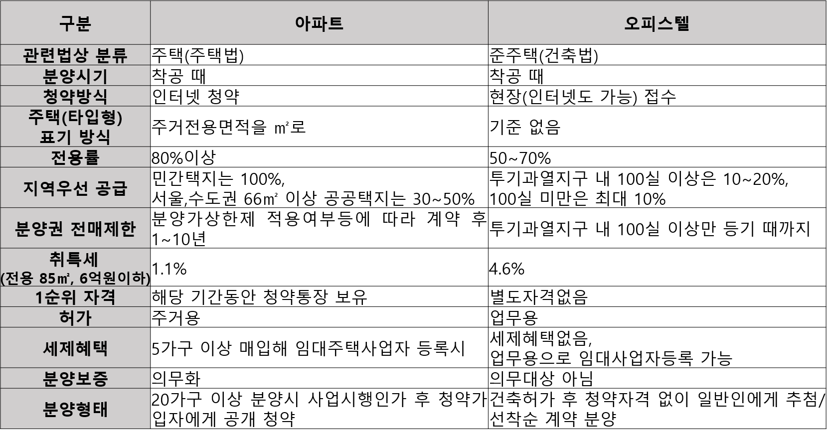 같은 단지 내에서도 아파트와 오피스텔을 같이 분양하는 경우도 많아졌고요.