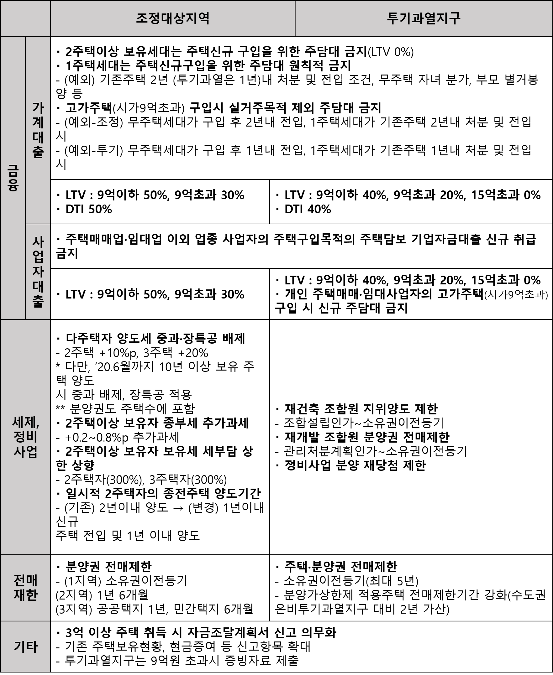 全규제지역내 주택 구입을 위해 주택담보대출을 받는 경우 6개월내 기존주택 처분 및 신규주택 전입 의무 부과