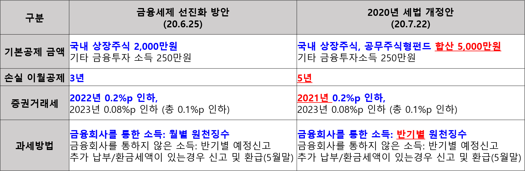 ※ 금융세제 선진한 방안 원안과 개정안 차이 정리